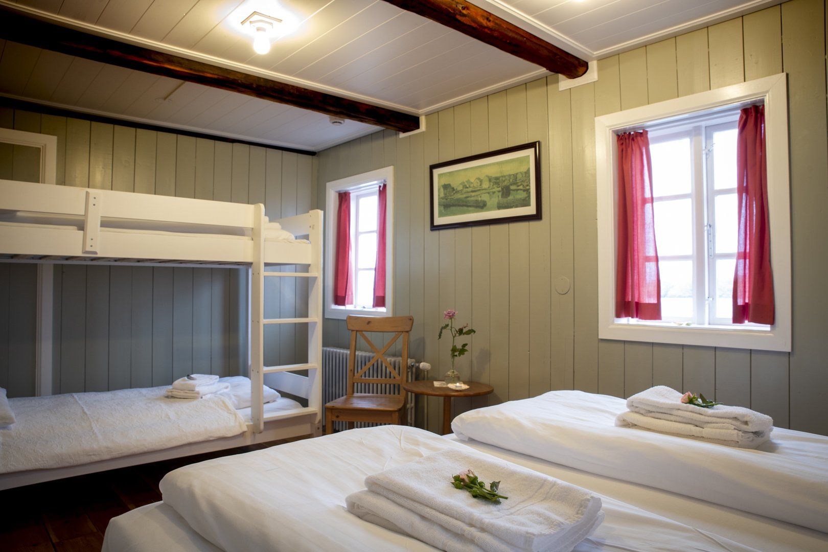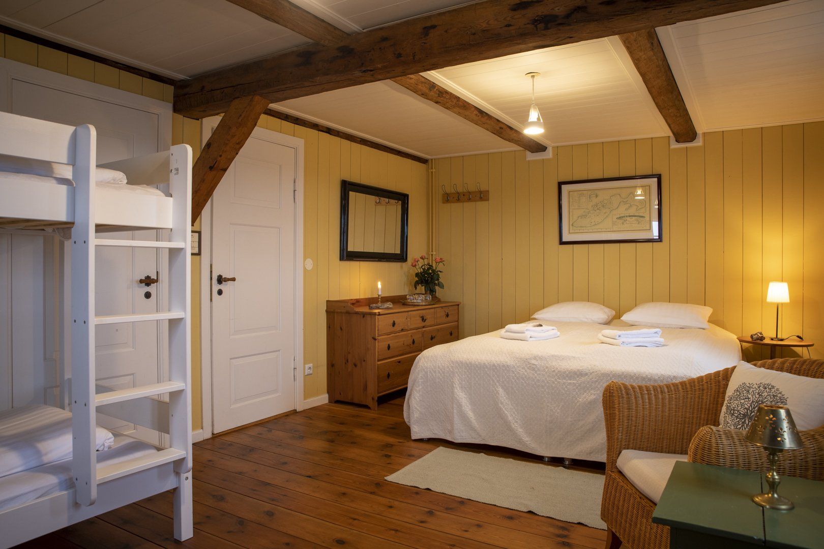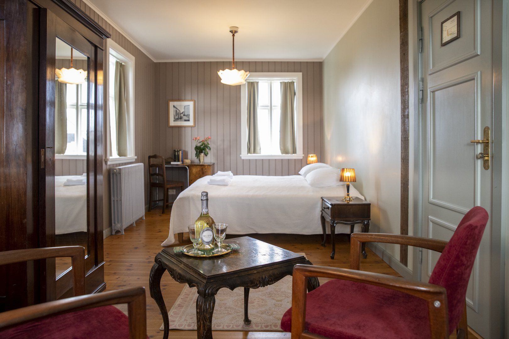 Borðstofa hótelsins og gistiherbergin eru í umbreyttum vörugeymslum sem eru við gamla markaðstorgið. Gestir geta notið einstaks andrúmslofts eyjunnar í notalegum og velkomnum gistirýmum og notið matar með vali með útsýni yfir þorpið, strandlengjuna og varpstöðvar norðurslóða í Skansmýri.