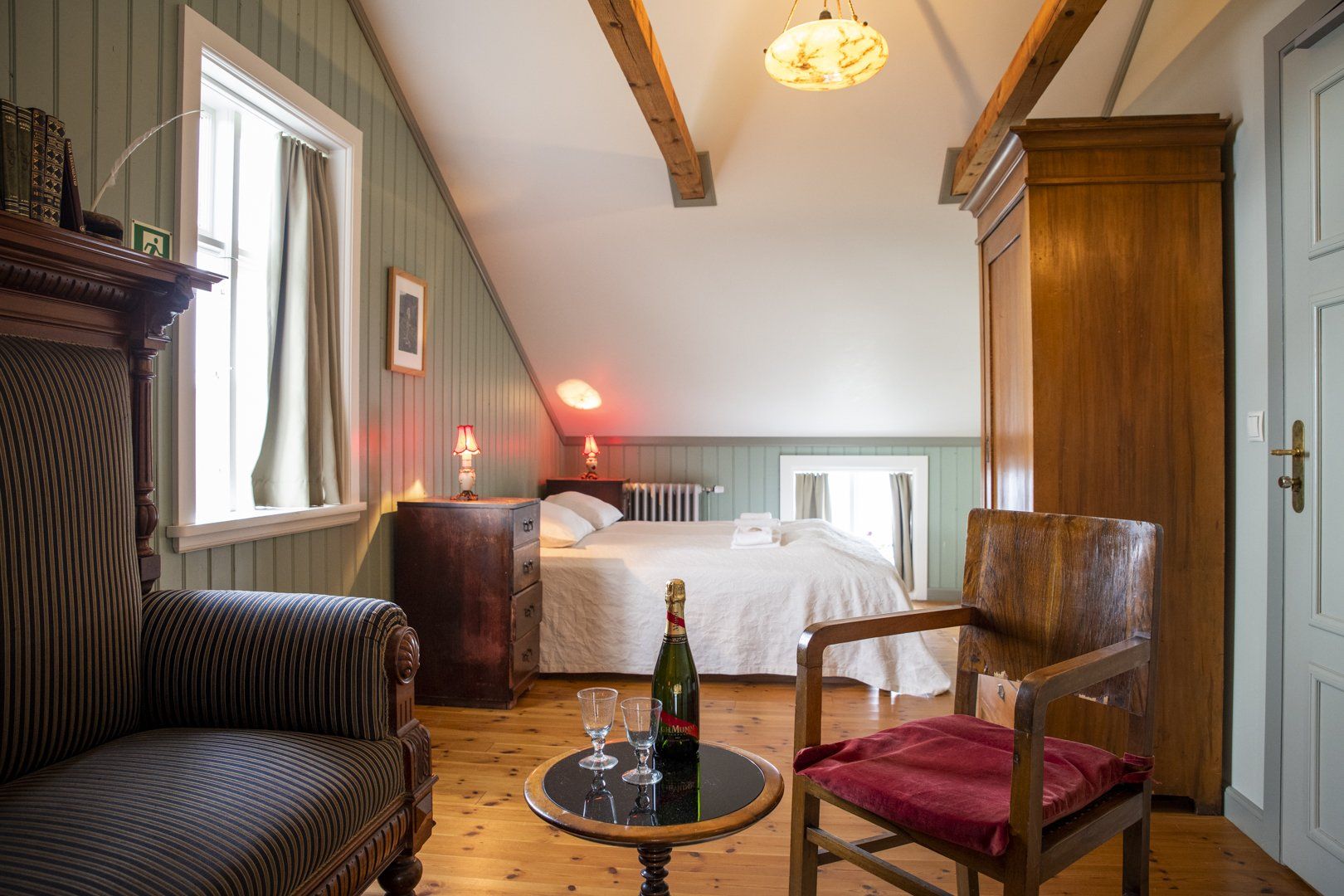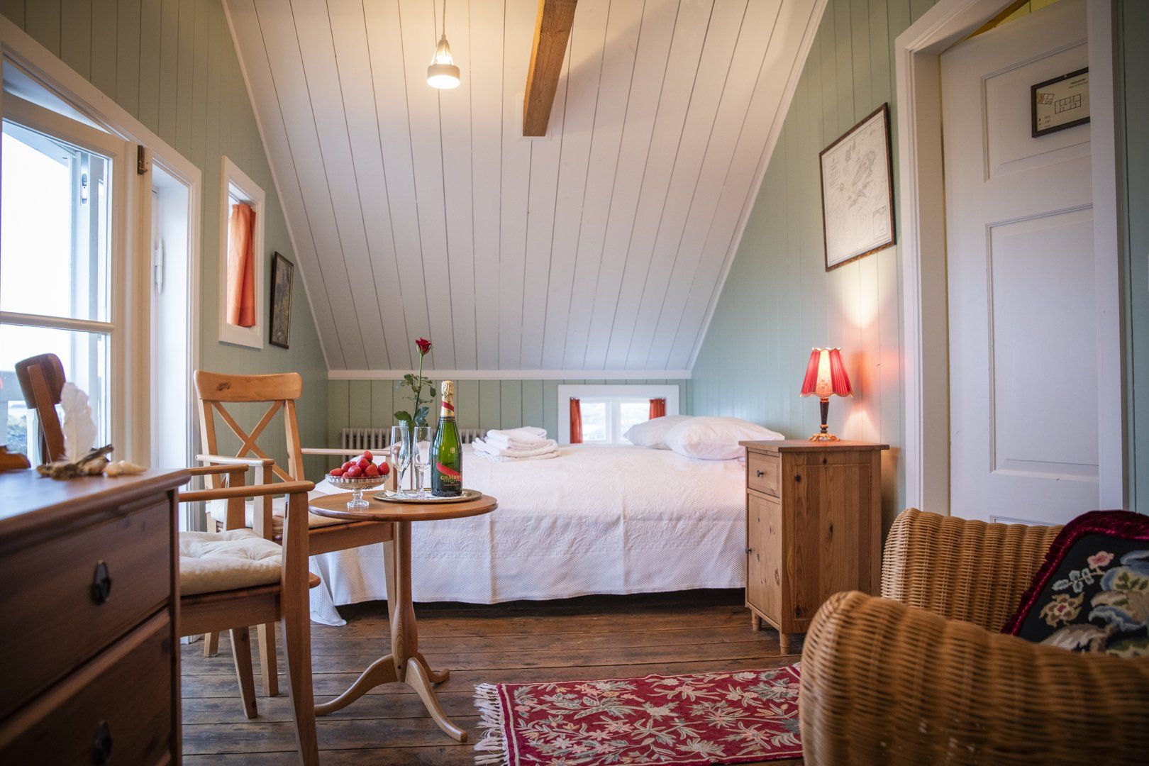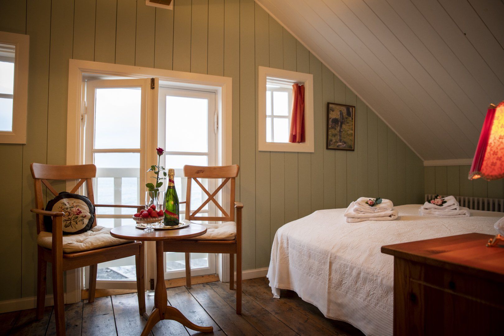 Herbergin eru fallega innréttuð í gömlum, hefðbundnum íslenskum stíl sem samræmast heildartilfinningu eyjarinnar.